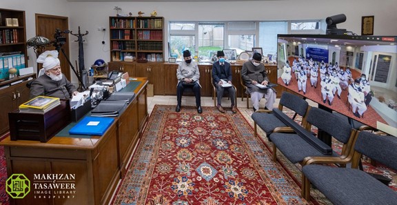 كانت هذه هي المرة الأولى التي يعقد فيها حضرته لقاء افتراضيًا عبر الإنترنت مع وفد من قاديان، مسقط رأس مؤسس الجماعة الإسلامية الأحمدية حضرة ميرزا غلام أحمد (عليه السلام).
