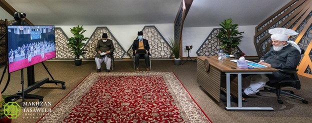 ترأس حضرته الاجتماع من استديو إم تي إيه في إسلام أباد في تيلفورد، بينما انضم أعضاء الهيئة الإدارية الوطنية من قاعة "إيوان طاهر" في قرية السلام في تورونتو.