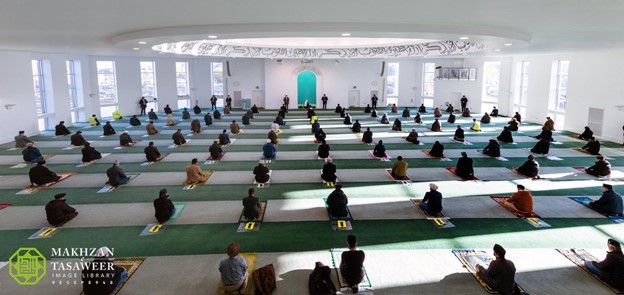 قبل مغادرته إلى إسلام أباد أمَّ حضرة الخليفة صلاتي الظهر والعصر في مسجد بيت الفتوح.