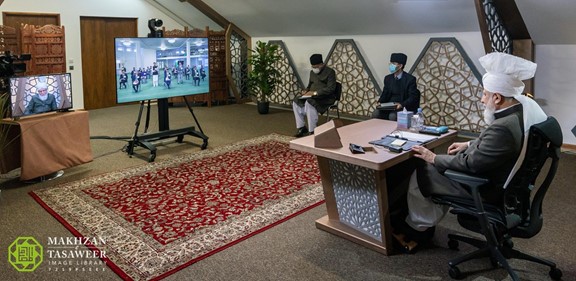 ترأس حضرة الخليفة الاجتماع من استوديوهات إم تي إيه الدولية في إسلام أباد في تيلفورد، بينما انضم أعضاء الهيئة الإدارية إلى الاجتماع افتراضيًا من مسجد بيت النصر في أوسلو، النرويج.
