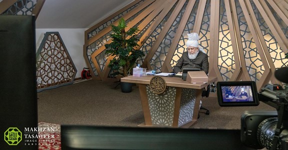 ترأس حضرته الاجتماع من استوديو إم تي إيه الدولي في إسلام أباد في تيلفورد، بينما اجتمع 19 خادمًا في مسجد طه في سنغافورة.