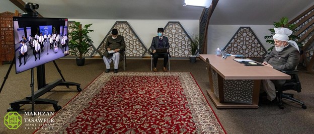 الأطباء موقفو الحياة من ألمانيا يتشرفون بلقاء افتراضي مع إمام الجماعة الإسلامية الأحمدية العالمية.