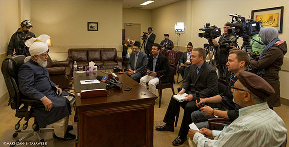 وفي وقت سابق من اليوم عقدت ثماني وسائل إعلام، بما في ذلك "CTV" و "كالغري هيرالد" مؤتمرًا صحفيًا مع أمير المؤمنين حضرة ميرزا مسرور أحمد نصره الله الذي أجاب على أسئلتهم.