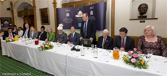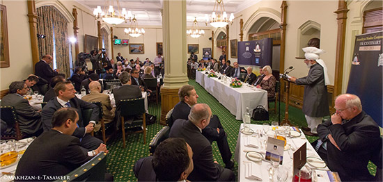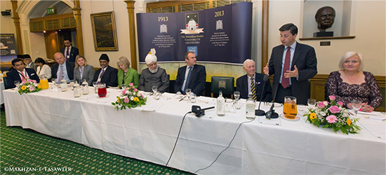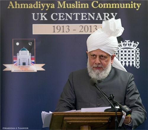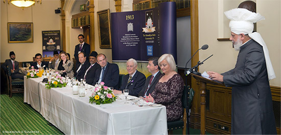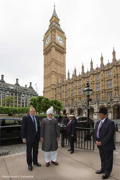 وكان حضرة أمير المؤمنين نصره الله يزور وستمنستر لإلقاء الخطاب الرئيسي في حفل استقبال خاص استضافه عضو البرلمان السيد إدوارد ديفي ( وزير الدولة لشؤون الطاقة وتغير المناخ) و "المجموعة البرلمانية للجماعة الإسلامية الأحمدية" بمناسبة مرور مائة عام على تأسيس الجماعة الإسلامية الأحمدية في المملكة المتحدة.