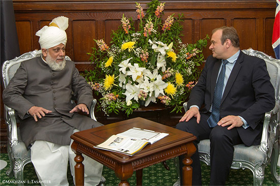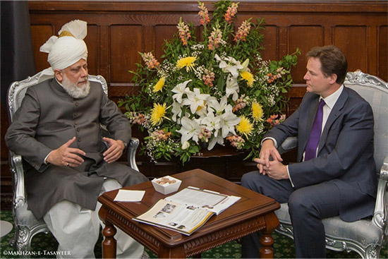لقاء أمير المؤمنين مع نائب رئيس الوزراء السيد نيك كليج ووزير الطاقة السيد إدوارد ديفي وبحضور أمير الجماعة الإسلامية الأحمدية في المملكة المتحدة السيد رفيق حياة ولورد ويمبلدون اللورد طارق