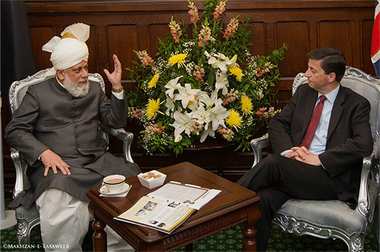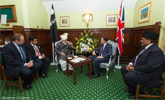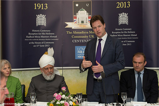 استقبل نائب رئيس الوزراء وعدد من وزراء الدولة والبرلمانيين يوم 11/06/2013 إمام الجماعة الإسلامية الأحمدية خليفة المسيح الخامس حضرة ميرزا مسرور أحمد في قصر بيوت البرلمان في لندن.