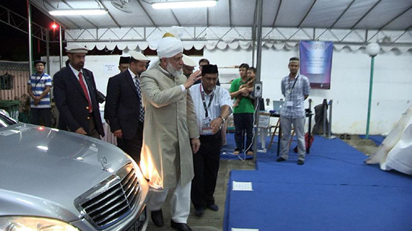 وكان في استقبال حضرته، في ثاني زيارة له للبلاد، في مطار شانجي في العاصمة سنغافورة مندوبين من أبناء الجماعة الإسلامية الأحمدية من سنغافورة وإندونيسيا وماليزيا.