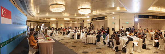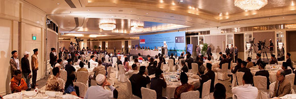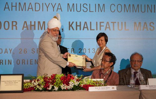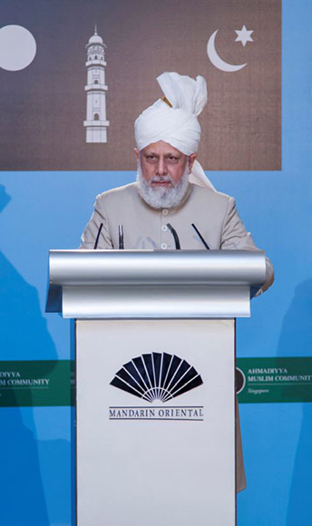 ألقى أمير المؤمنين حضرة ميرزا مسرور أحمد نصره الله الخطاب الرئيسي في حفل استقبال أقيم على شرفه في فندق ماندارين أورينتال في سنغافورة مساء يوم 26/9/2013. وحضر هذا الحدث أكثر من مائة ضيف من غير الأحمديين، حيث كان من بينهم كبار الشخصيات كالسيد لي كوون تشوي أحد الأعضاء المؤسسين لحزب العمل الشعبي الحاكم، والذي شغل أيضًا خلال مسيرته المهنية منصب سفير سنغافورة إلى مختلف البلدان.